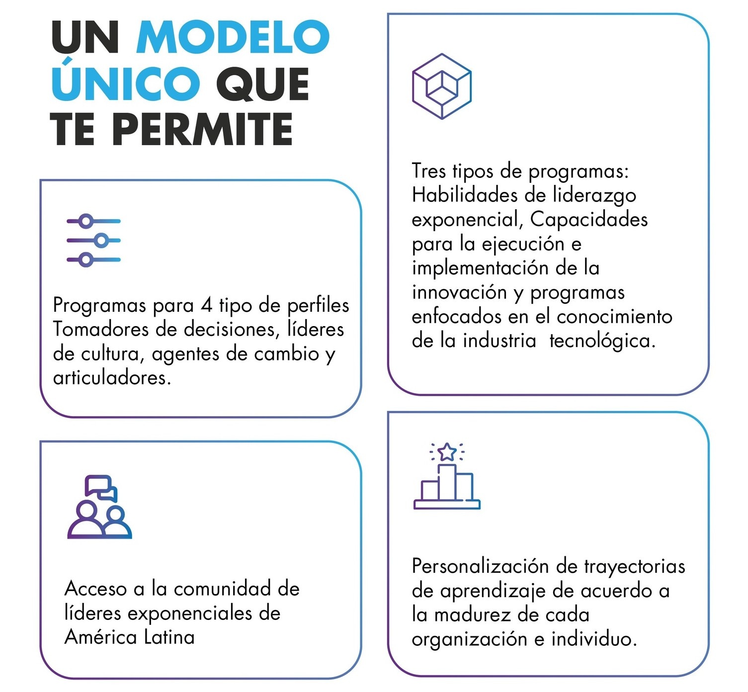 Unidos podemos más. Queremos contagiar a Latinoamérica con la mentalidad exponencial creando contenidos gratuitos para el público y aprovechando la capacidad de difusión de los canales propios y de nuestros aliados.